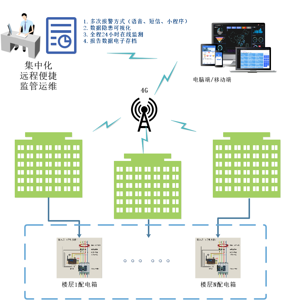 远程控制功能:通过云平台可实现对设备参数阈值设置以及远程消音复位等操作;